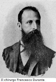 Francesco Durante nacque invece nel 1844 a Letojanni, piccolo borgo sulla costa orientale della Sicilia, attualmente noto e frequentato centro turistico, data la collocazione contigua a Taormina. Divenne un insigne medico che fece della sua vita un atto di fede rivolto a servire tutti, nessuno escluso con le armi della scienza: professore di patologia e di clinica chirurgica all’università di Roma fu tra i primi a praticare la sutura delle arterie e l’asportazione dei tumori. Pur essendo vissuto per molti anni lontano, ebbe il suo cuore sempre rivolto alla terra natia, la sua Sicilia e si prodigò in modo particolare per i più bisognosi di Letojanni e del comprensorio senza mai voler alcun compenso. Mentre era ancora in vita, loro stessi “i poveri” eressero nel 1923, a testimonianza della loro perpetua riconoscenza, un monumento con il suo busto, che ancora oggi si può ammirare nella suggestiva piazzetta, tra gli accoglienti bar all’ombra e le palme secolari prospicienti la sua stessa casa, trasformata in raffinato ambiente ricettivo, grazie alle missionarie di Francesca Cabrini.