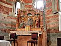 Sovrasta l’altare un trittico quattrocentesco realizzato in terracotta policroma. Rappresenta la Vergine col Bambino; a destra sant’Agostino, a sinistra una figura barbuta accompagna un devoto inginocchiato in abiti regali (ancora la leggenda ama riconoscere in tale figura Carlo Magno, mentre studi più recenti propendono per Carlo VIII re di Francia).