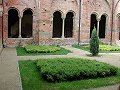 Dalla chiesa, attraverso una minuscola porta, si accede al chiostro, un angolo di silenzio conservato nei secoli, simbolo dell’antica pace cenobitica. Il chiostro sembra essere stato realizzato in diverse epoche: per primo il portico occidentale, che ha ancora una copertura in legno; poi quello settentrionale, derivato dalla navata destra della chiesa; quindi gli altri due.