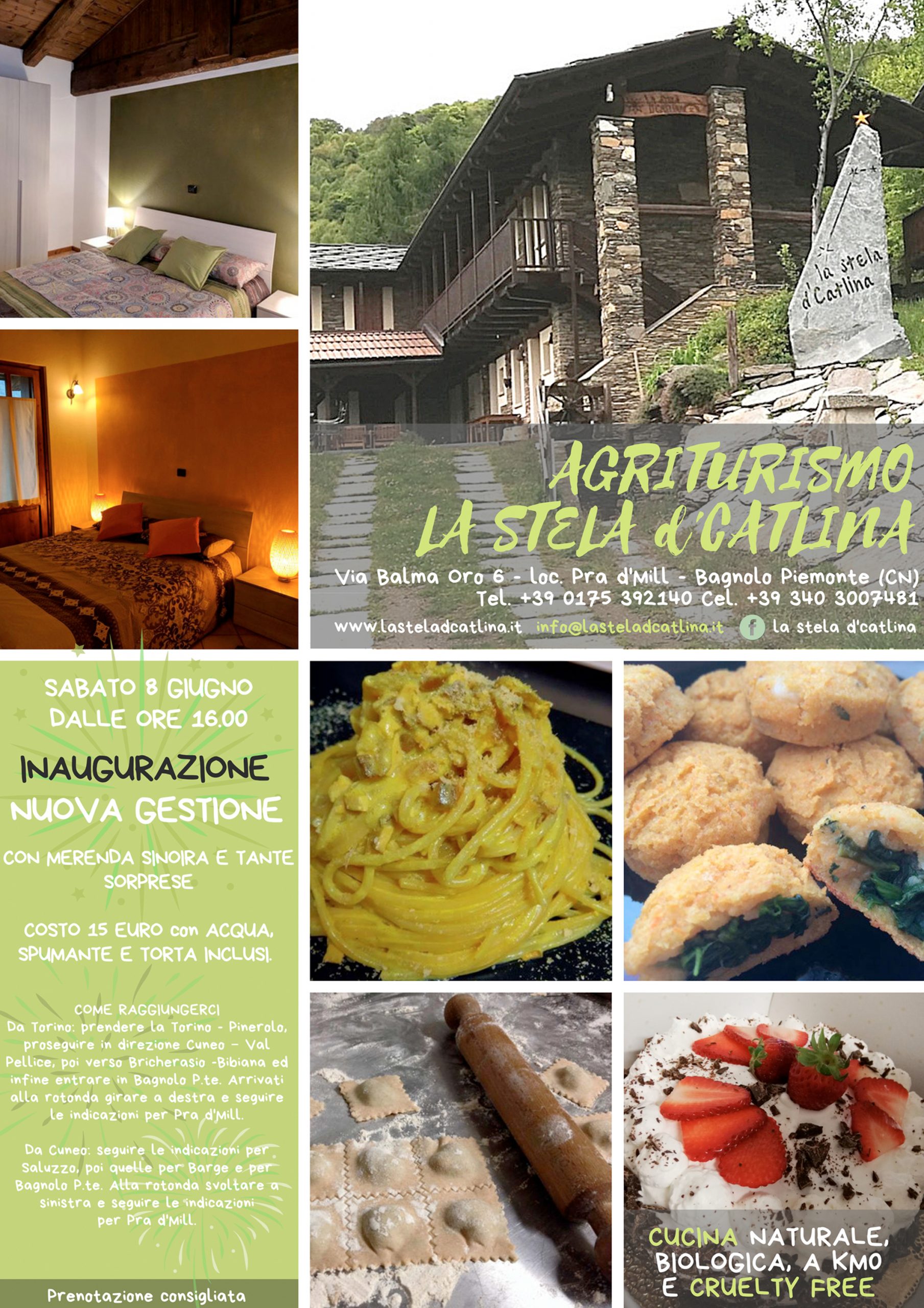 PRA D’ MILL– L’8 giugno a partire dalle ore 16, a Pra d’Mill, nella splendida cornice delle Valli dell’Infernotto, in provincia di Cuneo, inaugurazione de “La Stela d’ Catlina“, l’agriturismo a pochi passi dal monastero circestense “Dominus Tecum”. Una cucina semplice e allo stesso tempo ricercata, utilizzando prodotti naturali, locali e biologici, con rivisitazione in chiave vegan di piatti locali tradizionali, in grado di stupire piacevolmente i palati più esigenti.