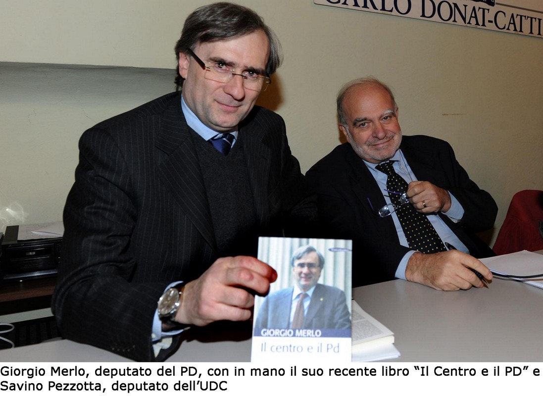 TORINO – Venerdì 26 novembre, presso la Fondazione Donat–Cattin in via Stampatori 4, si è tenuta la presentazione del libro Il centro ed il PD (Rubettino Editore, 2010) di Giorgio Merlo, deputato PD e vice presidente Commissione Vigilanza Rai. Hanno partecipato Savino Pezzotta, ex segretario generale CISL ed attuale deputato UDC e Gianfranco Morgando, segretario regionale del PD. Assente il sindaco di Torino, Sergio Chiamparino, impegnato a Roma.